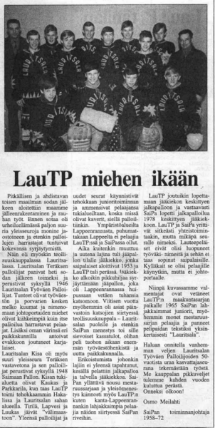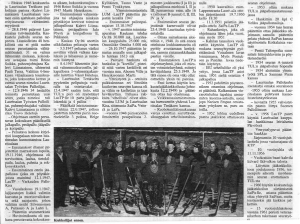 Pääset tähän aikakoneeseen tutustumalla näihin artikkeleihin jotka on alunperin julkaistu Palloviesti-Lehdessä vuonna 1996 - LauTP:n täyttäessä 50 vuotta.