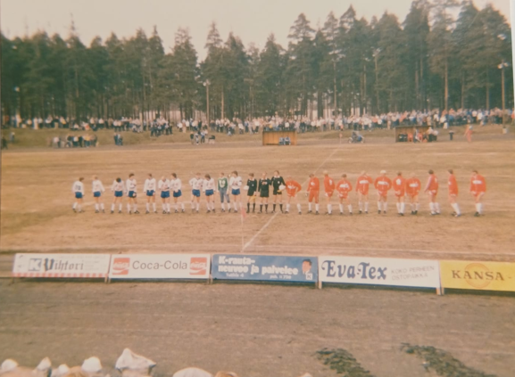 Kuvat: 1) LauTP - KP-75 ottelu II-divisioona, 2) LauTP Edustus teeenaa 1980-luvun alussa valmentaja Reino Maran valvovan silmä alla Lauritsalan hiekalla. /JUTUN LOPUSSA: 3) Tiukkaa taistelua Lauritsalan kentällä -84, LauTP-KontU 4) Lauritsalan vanhan alakoulun liikuntasali ulkoa 5) Lauritsalan vanhan yläkoulun liikuntasali ulkoa 6) Nurmikentällä pelattiin eikä säästelty